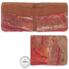 This wallet features a rich red-toned leather exterior, accented with visible lace marks that hint at its past life as a well-worn baseball glove. The character in each scuff and stitch line makes it unmistakably one-of-a-kind—bold in color, storied in texture, and built to carry history in your pocket.