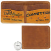 This billfold is crafted from vintage softball glove leather, featuring bold, original markings from its past life on the field. The left interior panel proudly displays “The Softballer – Cowhide Leather Palm”, while the right side is stamped with “Competition – Softball Size”, making it a one-of-a-kind piece that blends rugged charm with game-worn authenticity.