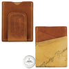 The outermost front card pocket on this Money Clip Card Case is made of leather we hand-cut from a vintage glove chosen explicitly for its visual character. We combined those pieces with a back panel, a magnetized clip, and two card pocket layers made with premium quality full-grain steerhide to provide structure and durability.