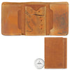 The three front card pockets on this trifold were hand-cut from a vintage baseball glove chosen explicitly for its visual character. We combined those pieces with a back panel and middle layer of premium quality full-grain steerhide to provide structure and durability.