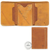 The three front card pockets on this trifold were hand-cut from a vintage baseball glove chosen explicitly for its visual character. We combined those pieces with a back panel and middle layer of premium quality full-grain steerhide to provide structure and durability.