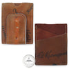 • 80% Glove Leather (Outermost Front Pocket, Back Panel, & Magnetized Money Clip), 20% Full-Grain U.S. Steerhide (Two Front-Middle Pockets)
