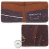The entire back panel and the two card pockets on this billfold wallet were hand-cut from a vintage baseball glove chosen explicitly for its visual character. We combined those pieces with premium quality full-grain steerhide to provide structure and durability.