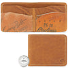 The two front card pockets on this billfold were hand-cut from a vintage baseball glove chosen explicitly for its visual character. We combined those pieces with a back panel and a middle layer of premium quality full-grain steerhide to provide structure and durability.