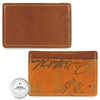 The entire front pocket on this card case is made of leather we hand-cut from a vintage glove chosen explicitly for its visual character. We combined those pieces with a premium quality full-grain steerhide for the back panel and middle pocket to provide structure and durability.
