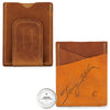 The outermost front card pocket on this Money Clip Card Case is made of leather we hand-cut from a vintage glove chosen explicitly for its visual character. We combined those pieces with a back panel, a magnetized clip, and two card pocket layers made with premium quality full-grain steerhide to provide structure and durability.