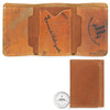 The three front card pockets on this trifold were hand-cut from a vintage baseball glove chosen explicitly for its visual character. We combined those pieces with a back panel and middle layer of premium quality full-grain steerhide to provide structure and durability.