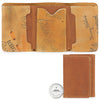 The three front card pockets on this trifold were hand-cut from a vintage baseball glove chosen explicitly for its visual character. We combined those pieces with a back panel and middle layer of premium quality full-grain steerhide to provide structure and durability.