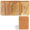 The three front card pockets on this trifold were hand-cut from a vintage baseball glove chosen explicitly for its visual character. We combined those pieces with a back panel and middle layer of premium quality full-grain steerhide to provide structure and durability.