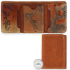 The three front card pockets on this trifold were hand-cut from a vintage baseball glove chosen explicitly for its visual character. We combined those pieces with a back panel and middle layer of premium quality full-grain steerhide to provide structure and durability.